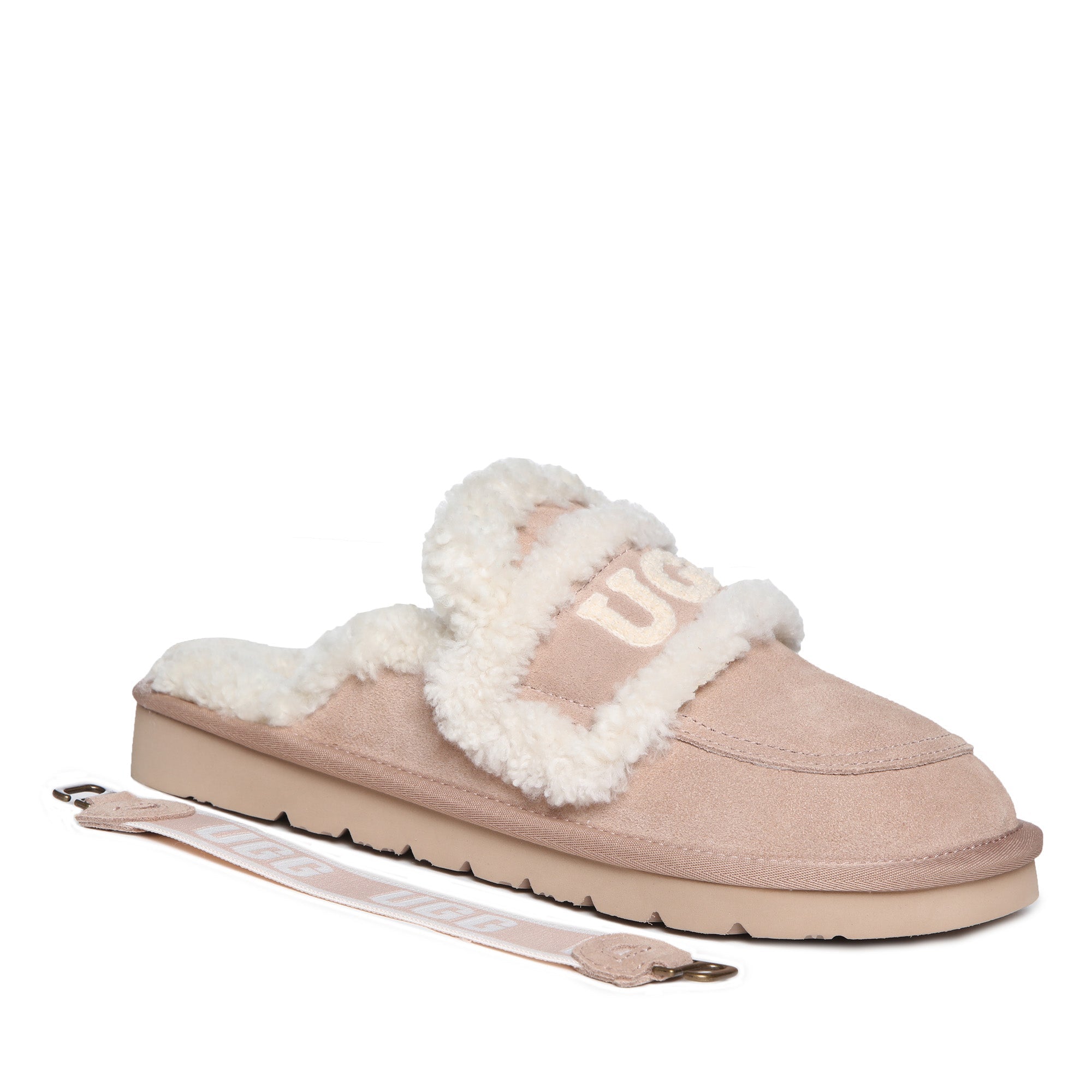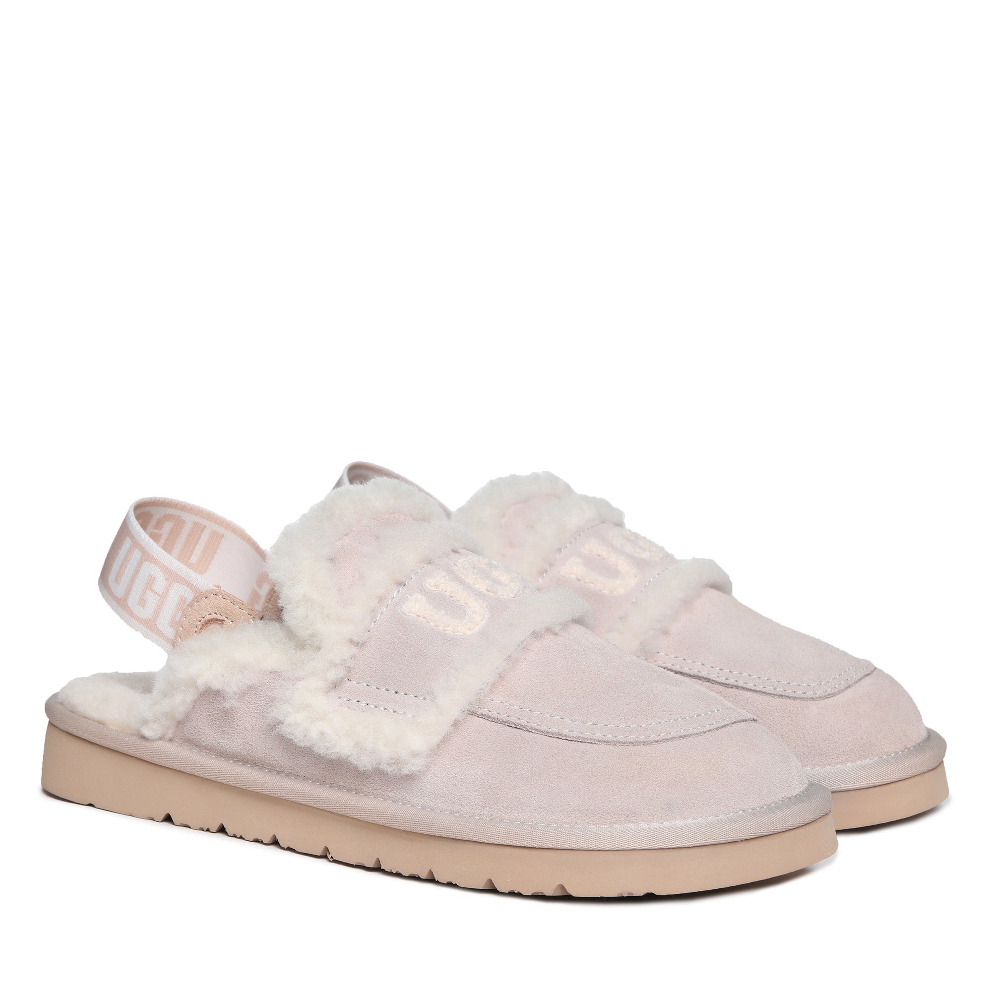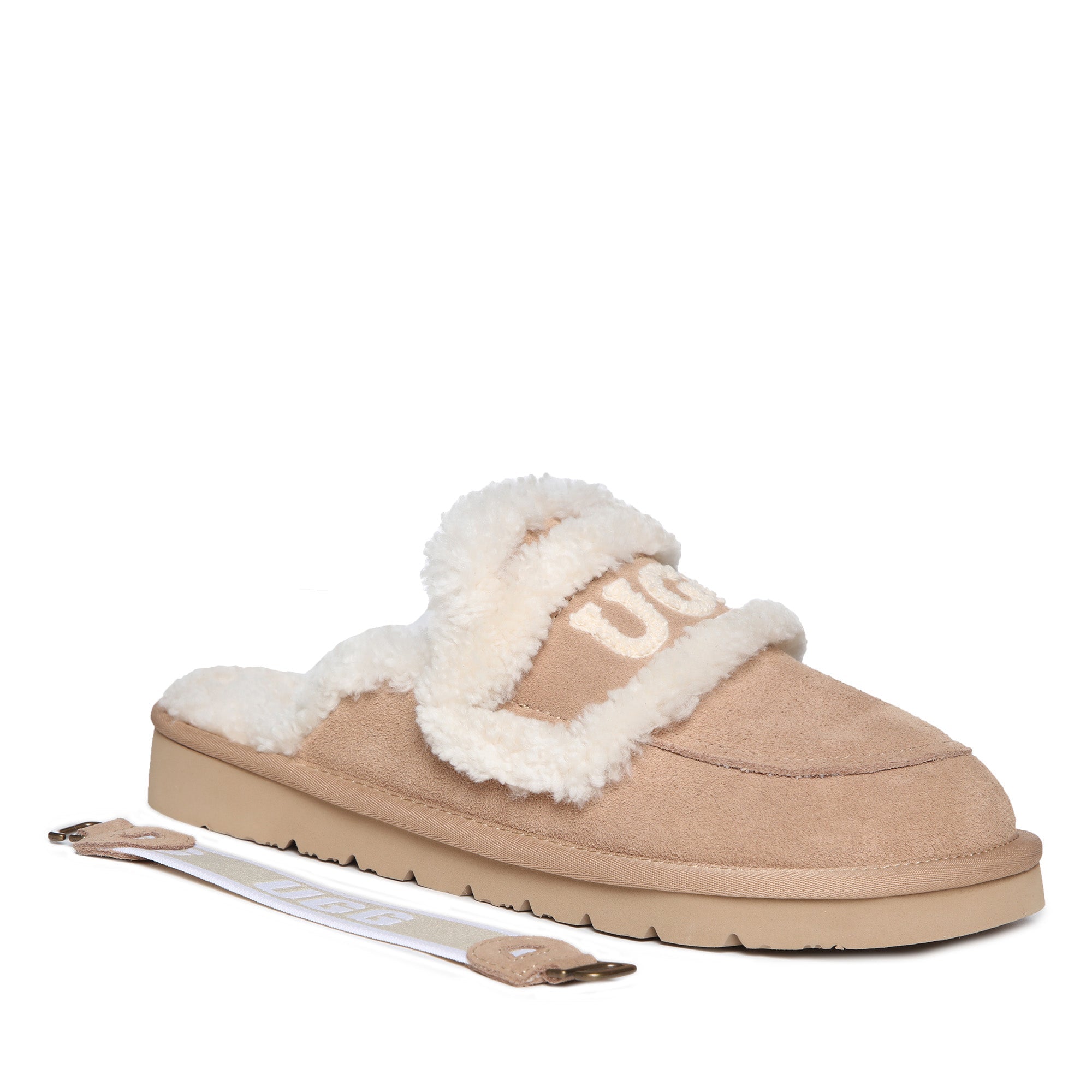 Slip into pure audacity with the Trisha Platinum Uggs—where comfort meets attitude. These bold slip-ons feature a plush fluffy UGG logo emblazoned across the top, making a statement that refuses to whisper. Crafted for those who dare to lounge without apology, the signature strap keeps your feet secure while the sumptuous fleece lining wraps you in uncompromising softness. Perfect for the confident wearer who treats comfort like a power move, these scuffs transform lazy days into a fashion moment. Unapologetically cozy, undeniably cool.