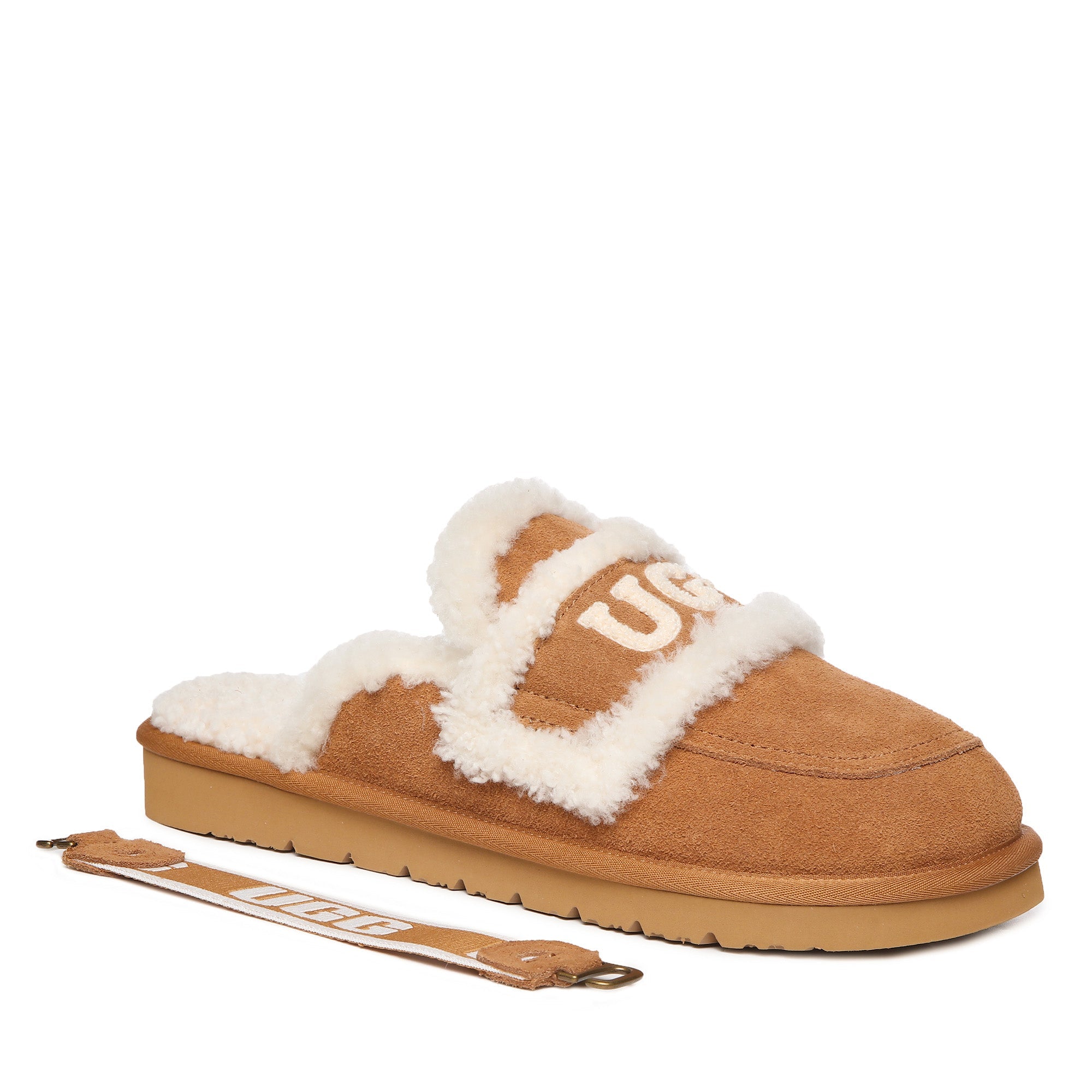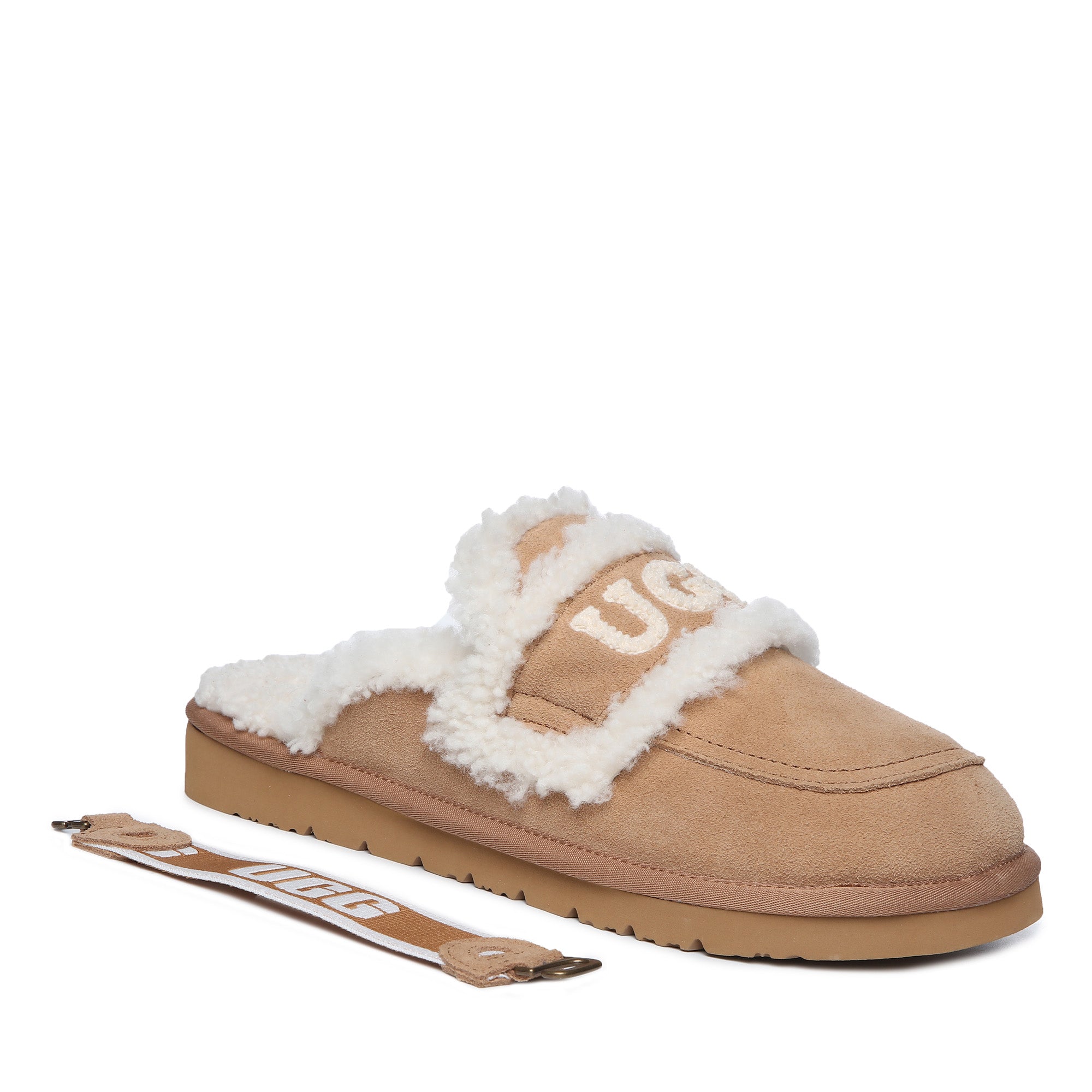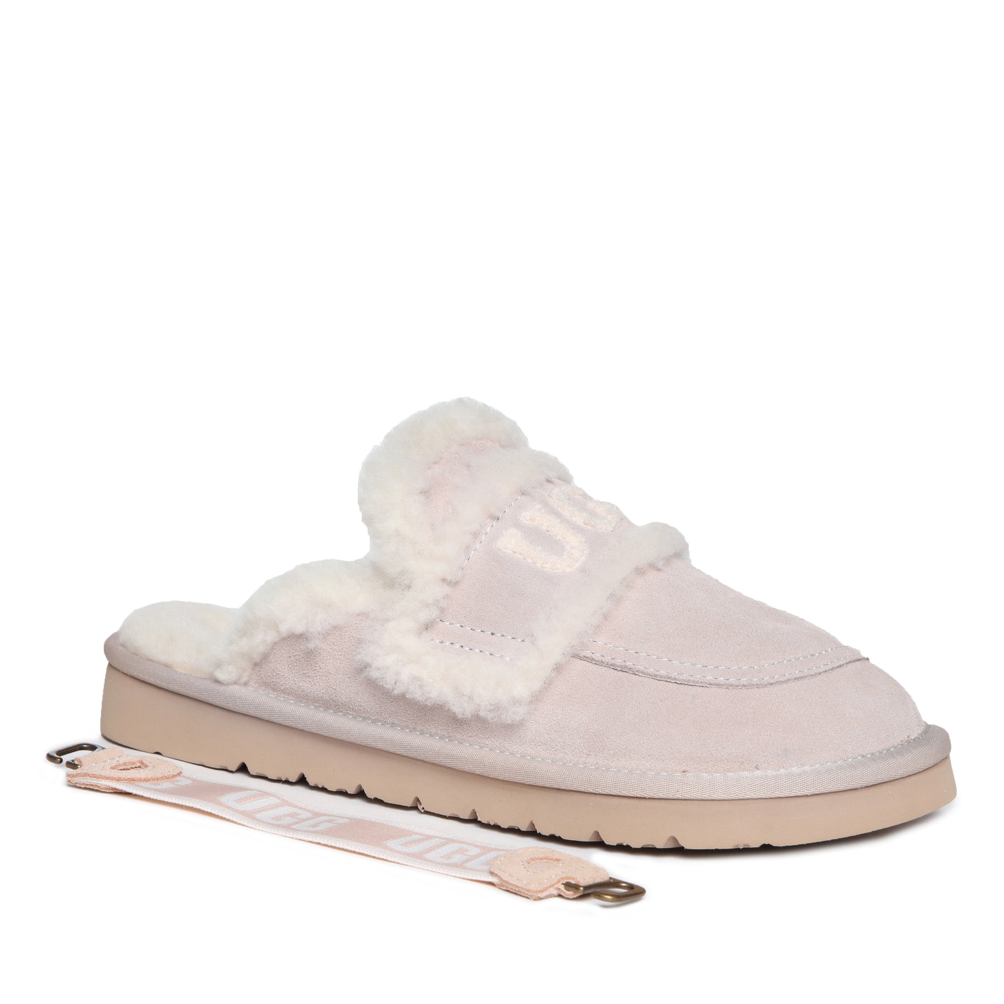 Slip into pure audacity with the Trisha Platinum Uggs—where comfort meets attitude. These bold slip-ons feature a plush fluffy UGG logo emblazoned across the top, making a statement that refuses to whisper. Crafted for those who dare to lounge without apology, the signature strap keeps your feet secure while the sumptuous fleece lining wraps you in uncompromising softness. Perfect for the confident wearer who treats comfort like a power move, these scuffs transform lazy days into a fashion moment. Unapologetically cozy, undeniably cool.